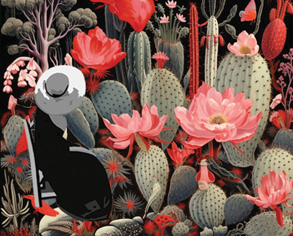Works from the project Memories of the Future blend digital and analogue technique with Artificial Intelligence to create series of “speculative fabulations” that address a local and global ecological issue around the interspecies of the Opuntia Cactus & the Cochineal insect.