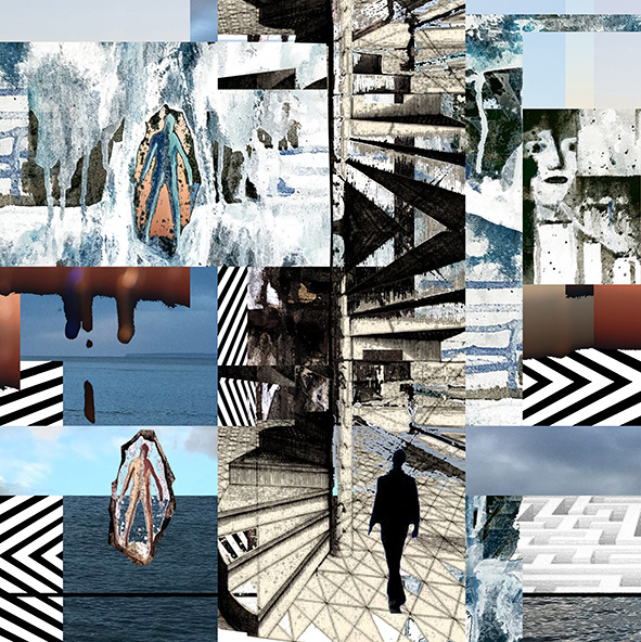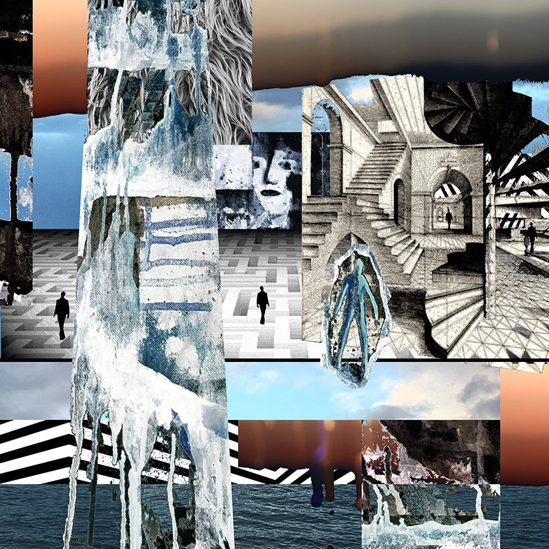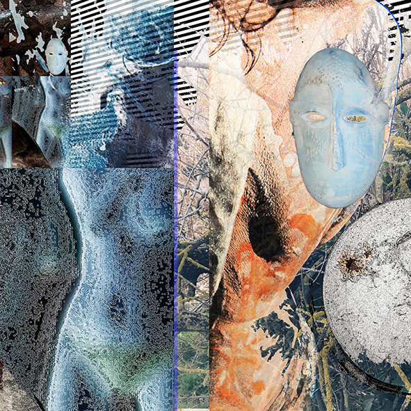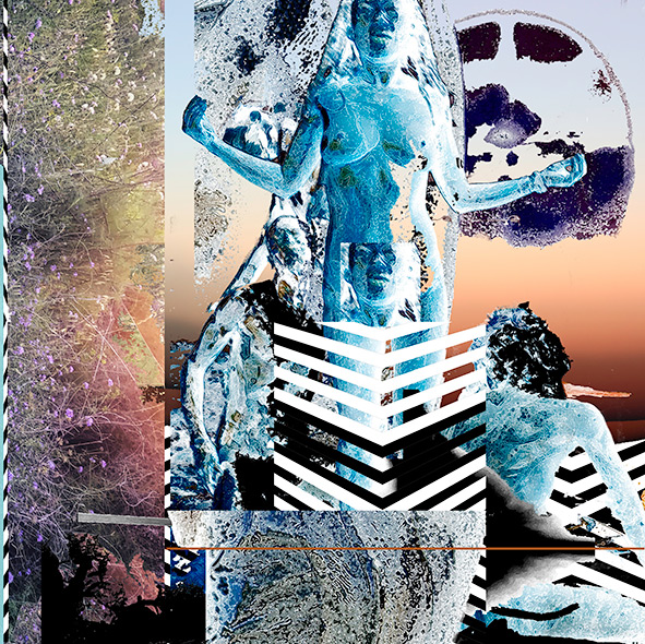 The Dreamscapes digital series are composed through processes of deconstructions and reconstructions similar to hypnagogia. I use digitality to fragment, layer, juxtapose and glitch photographic images coming from my daily life. Dreamscapes combine analogues and digital textures or patterns I create with images from fortuitous moments, life time lapses of synchronicities. These digital compositions are altered and transformed, bypassing the control of the conscious mind, until they shape into an imaginary landscape that can be figurative or abstract, or a hybrid of both. They invite the viewer to wander into their own imagination, associations and interpretations.